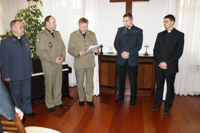 Po nabożeństwie liturgicznym, od którego rozpoczęła się odprawa, biskup wojskowy wręczył akt mianowania na stopień ppor. rez. księdzu Tomaszowi Woli. Grudniowa odprawa była też pierwszą dla nowego kapelana, ks. Mateusza Łaciaka, który decyzją konsystorza na wniosek biskupa wojskowego z dniem ordynacji przestał być pracownikiem cywilnym EDW, a powołany został na stanowisko cywilnego kapelana Wojsk Lądowych. Rozpoczynającemu służbę w roli kapelana skierowanego do wojskowej służby duszpasterskiej w Polsce południowo-wschodniej biskup wojskowy w imieniu wszystkich kapelanów i pracowników EDW złożył życzenia Bożego błogosławieństwa w służbie.